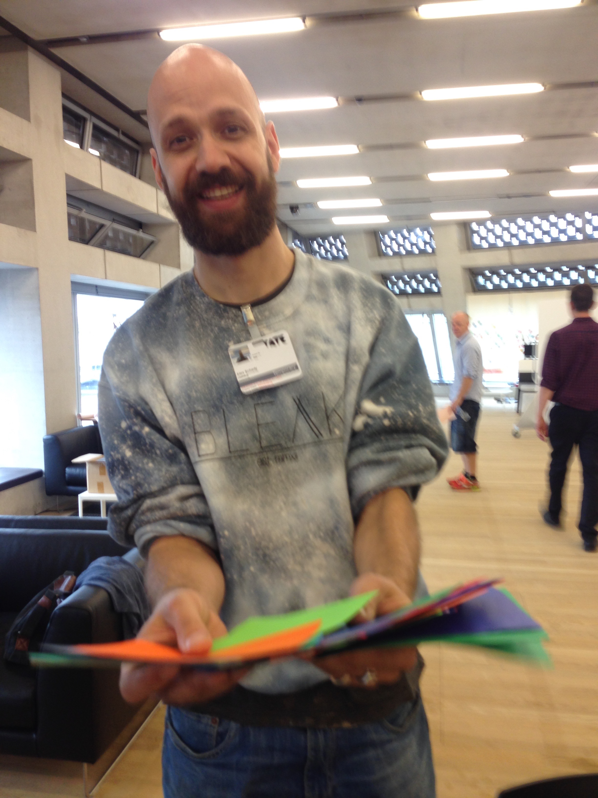 At Tate there were lots of people to help; technicians, observers, Tate curators and the learning team. Everyone was encouraged to record and upload onto Twitter for group sharing. In my classroom, there is usually only me. I’m thinking that perhaps there may be something in giving roles to students and asking them to be artists/ observer /recorders or if they have the skills, technicians. Recording, centrally gathered on Art Dept equipment so that students can then select and download their own recorded images of the sessions.